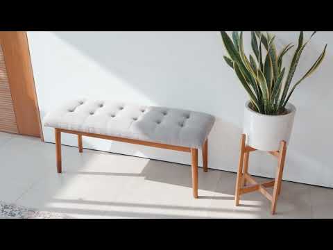Solid Teak Bench with Button Accent Cushion